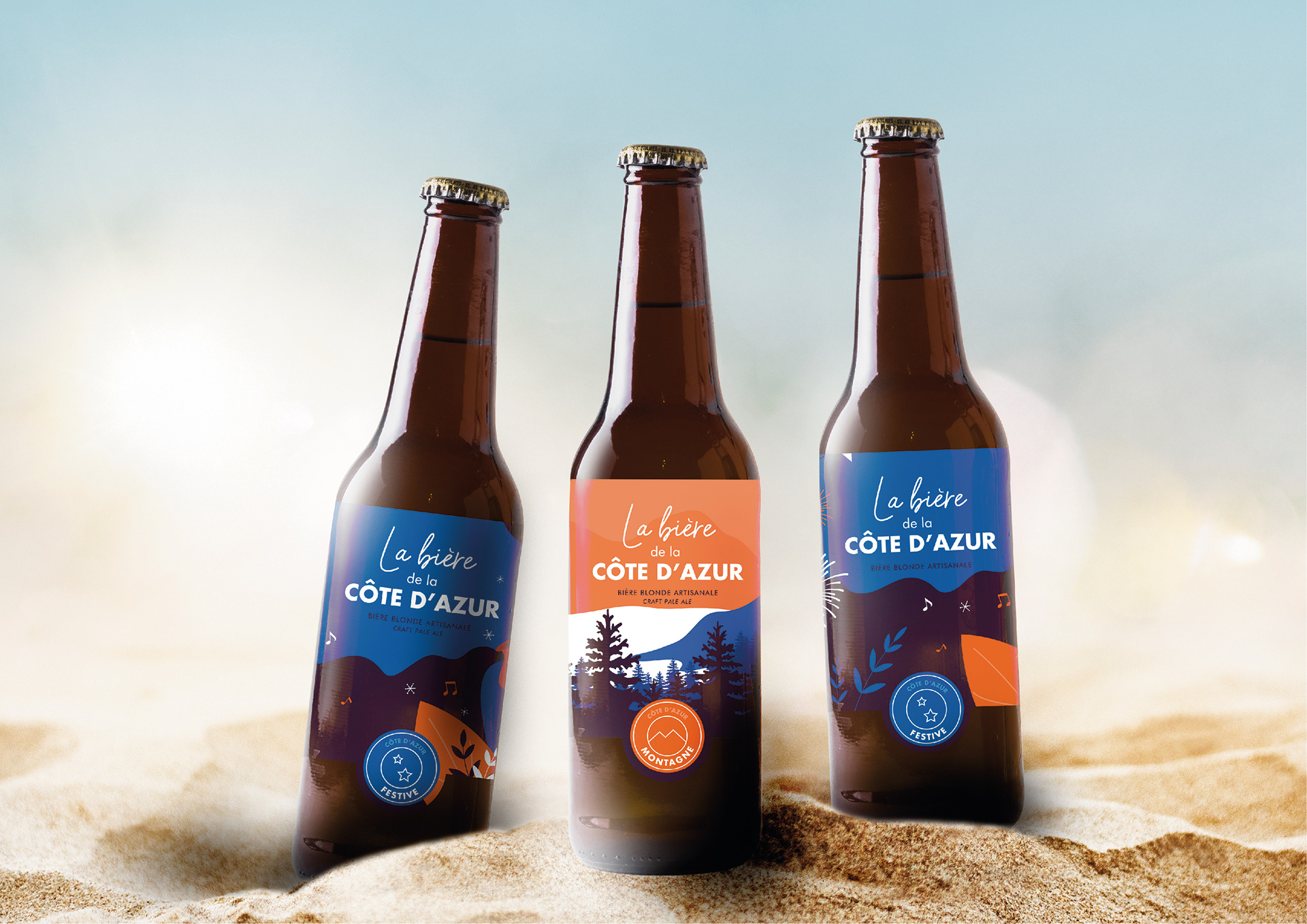 Création et mise en page des étiquettes des collections de bières La bière de la Côte d'azur, La bierra Nissarda et la bière Chloroquine Dundee, toutes trois commercialisées par Sting18.